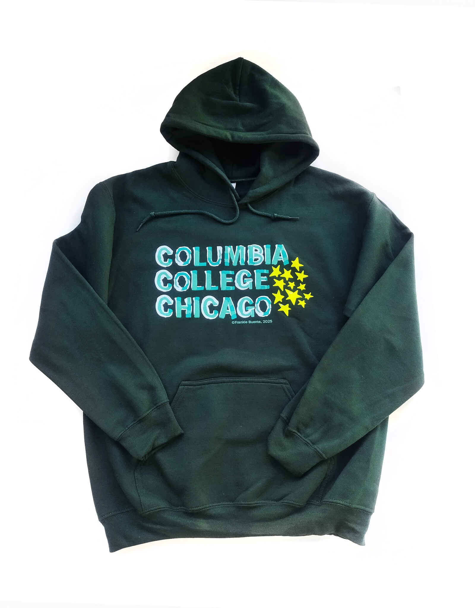 Columbia Hooded Sweatshirt in Forest Green, Design by Frankie Buente - $48