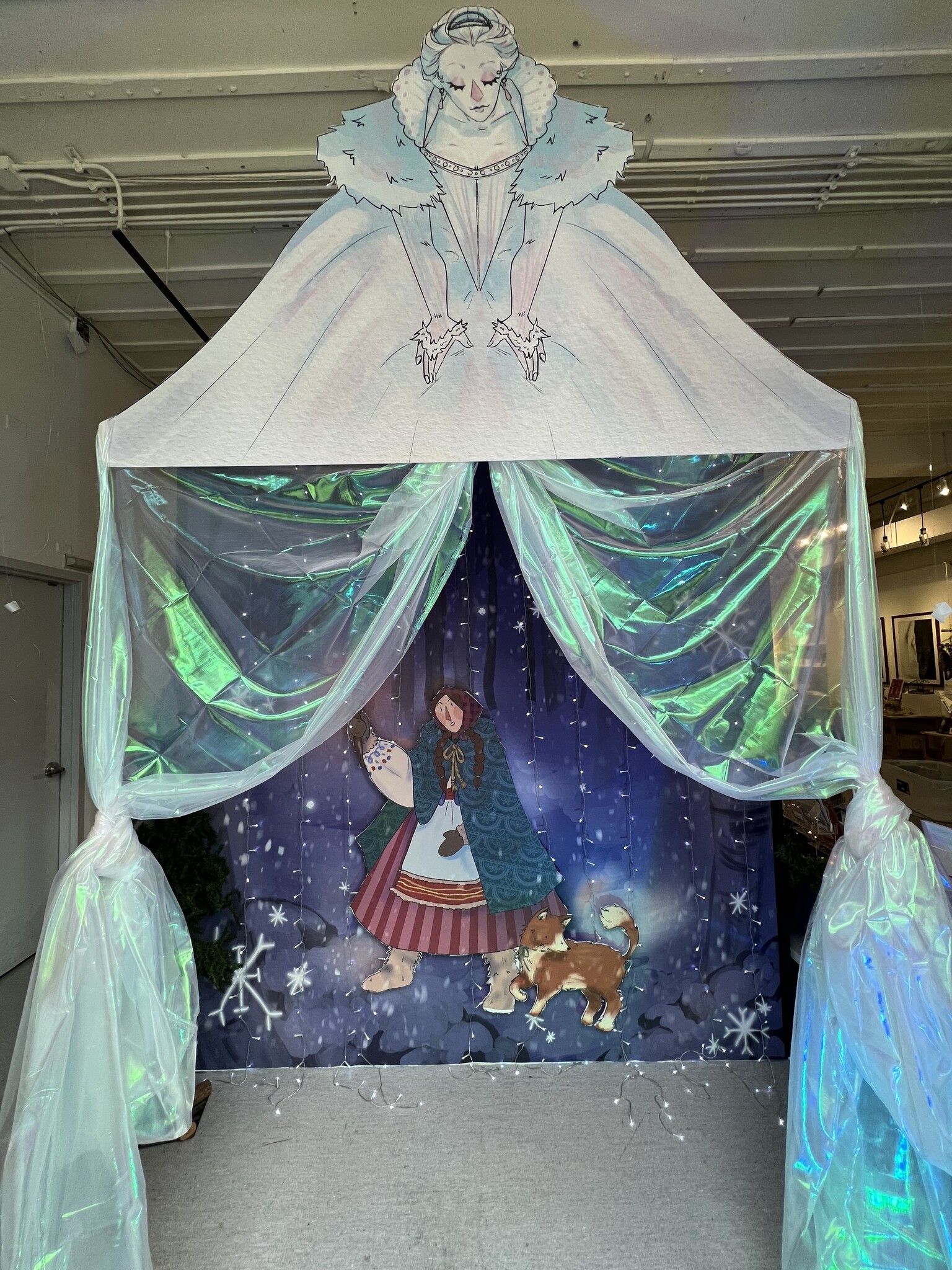 I was really inspired by Slavic Folklore like Vasillia the Beautiful, Hans Christian Anderson’s The Snow Queen, and traditional Polish clothing and motifs. Fairytales have always been really interesting to me from an illustration standpoint, it’s something that can create a feeling of warmth and comfort but still be wondrous and daunting. Many of my favorite books, plays, and tv shows have played with this concept, and working on this illustration for the Holiday Market has allowed me an excuse to explore these themes myself. The support of my Aunt Kim and my Uncle Erik, who have always been so supportive of me as an artist, and my beloved ex-roommates Autumn, Jocelyn and Maybelle, who have been so helpful as my idea sounding board for my ideas throughout the years, was so instrumental in this project as well.
